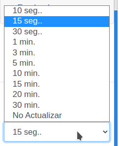 - Configuracion de Actualizacion de reportes (cada 10, 15, 30, … segundos)