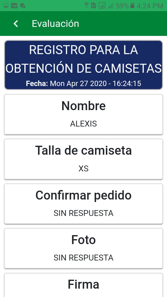Para ver el detalle de una evaluación creadas en la aplicación,
