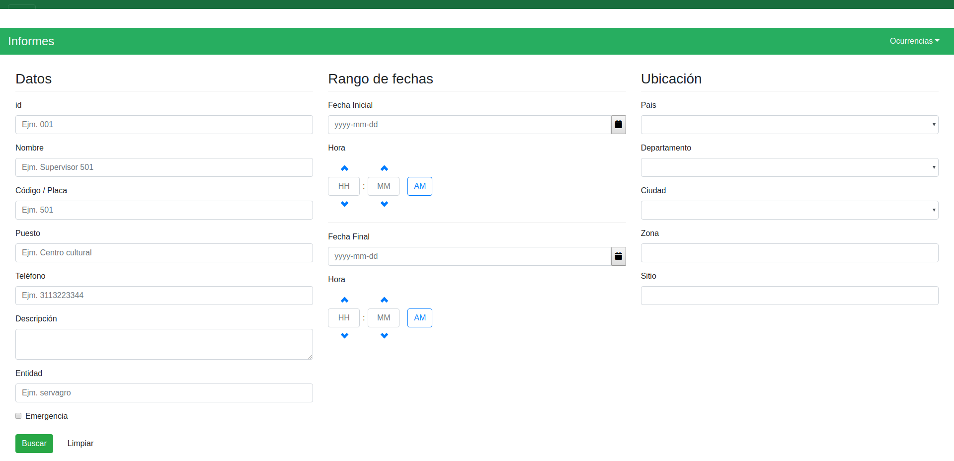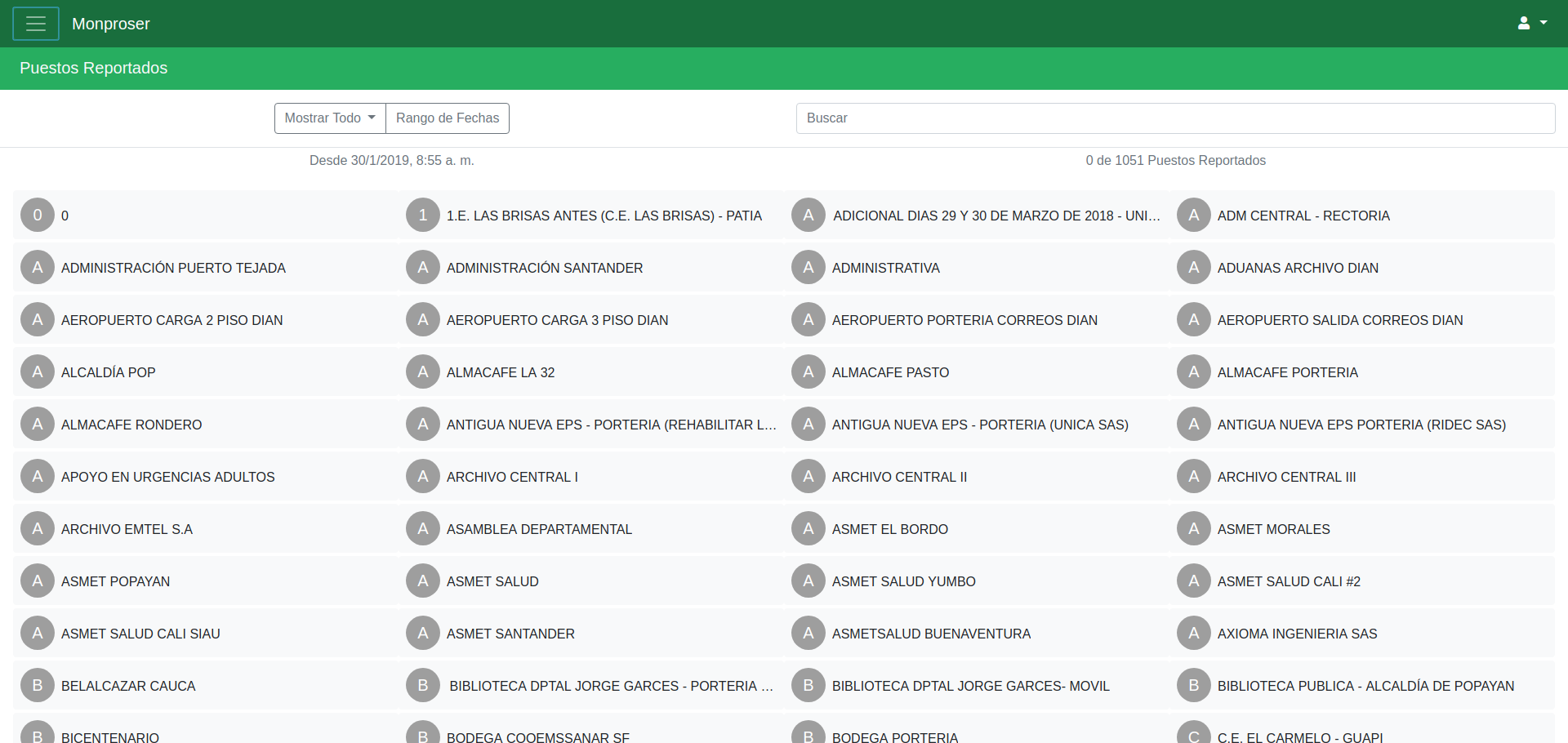 Esta herramienta ha sido desarrollada con el fin de agrupar los reportes por sitios de vigilancia en la última hora, para que el equipo de monitores tenga fácil acceso a los puestos de control y sus respectivos vigilantes.