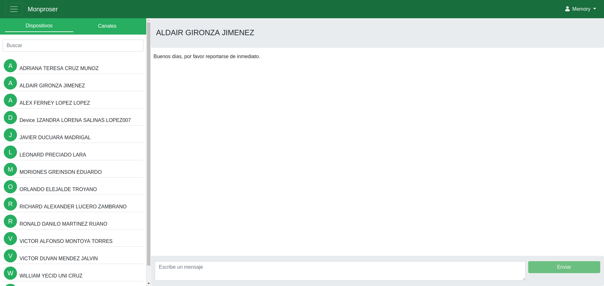 El servicio de mensajería permite a los monitores enviar mensajes de texto a un grupo de dispositivos por medio de canales de difusión.