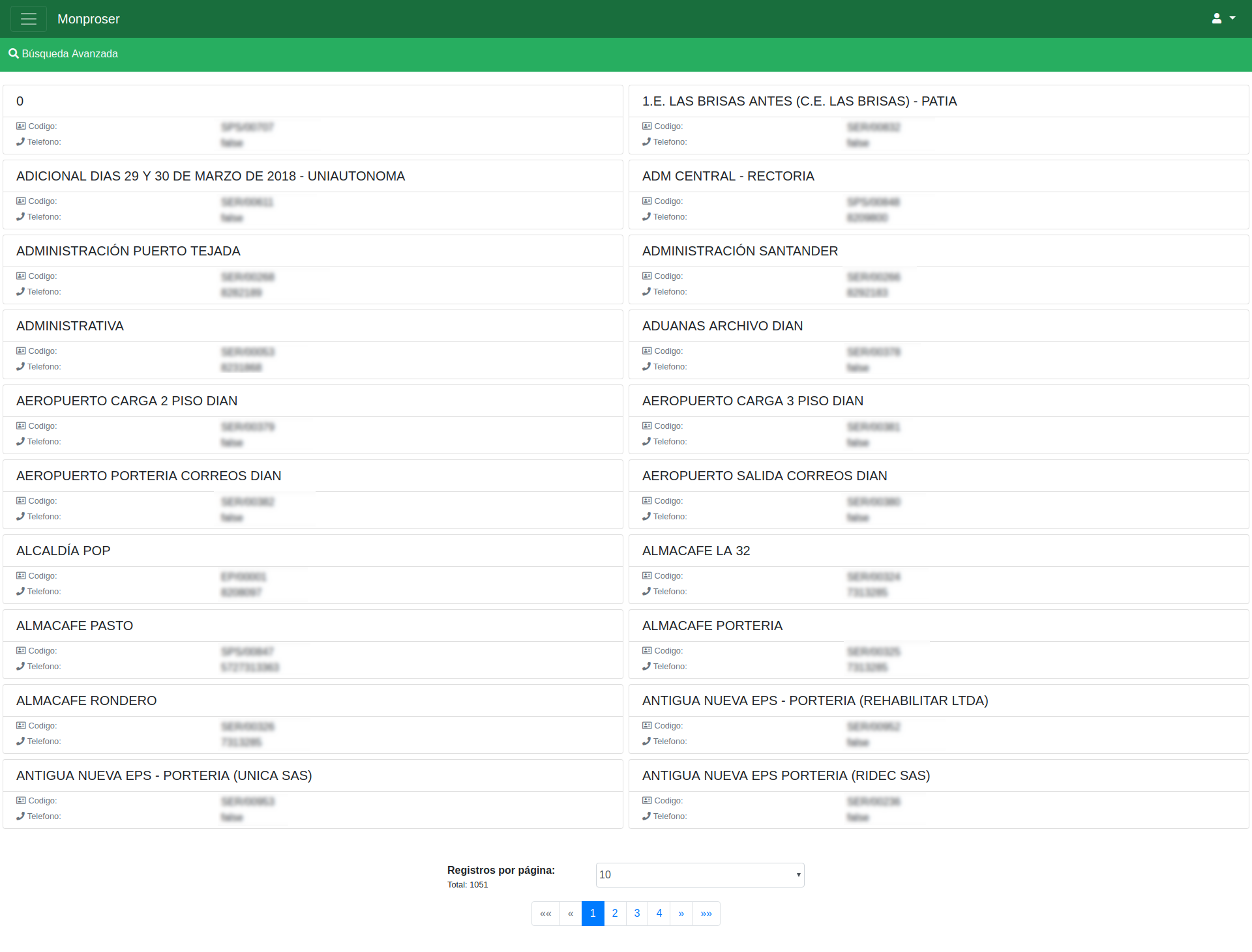 El sistema permite listar la información básica de los puestos de vigilancia tales como dirección, supervisor encargado, vigilantes y demás.