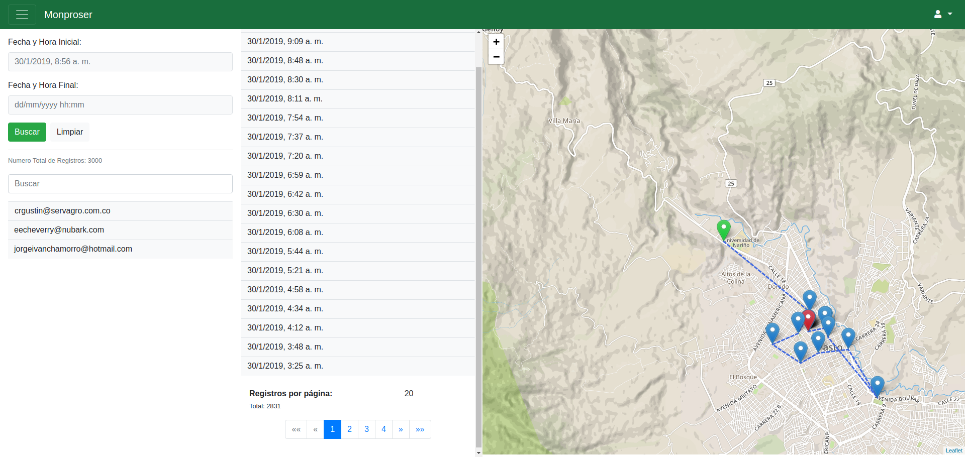 Esta es una herramienta muy importante para el equipo de monitores ya que permite localizar geográficamente y a su vez ver el recorrido de los supervisores.